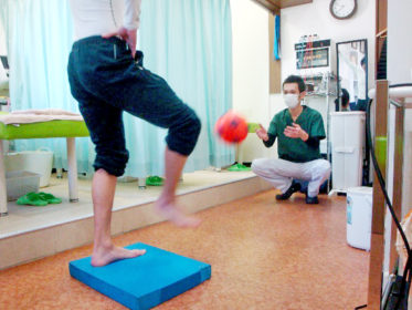 包帯やテーピングなどによる固定、運動療法、鍼灸療法にて施術を行います